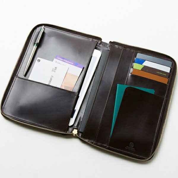 アイテム詳細 素材牛革(ブライドル) 機能性カードポケット×4,ペンポケット×1,マルチポケット×6 サイズ縦:約24.7cm 横:約17cm マチ:約2cm 生産国スコットランド アイテム説明 様々なアイテムをスマートに収納できるオーガナイザーケース。
